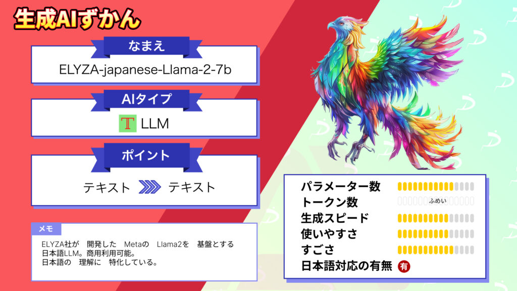 2023年8月29日に日本語版LLMの「ELYZA-japanese-Llama-2-7b」がリリースされました。