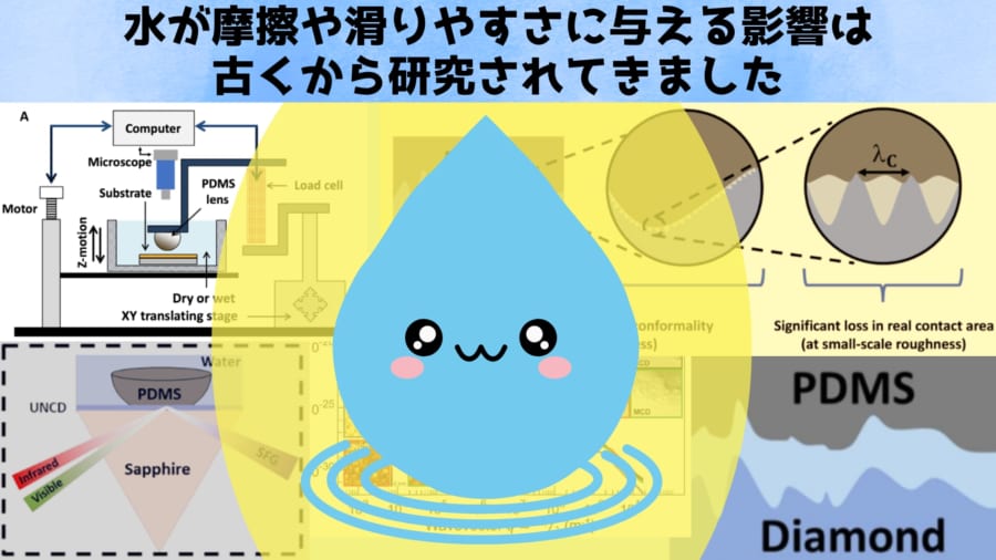 実際、これまで構築されてきた摩擦や接着に関する理論も、水がない乾燥した状況では上手く機能するものの、水がある状況では成り立たないことが知られています。