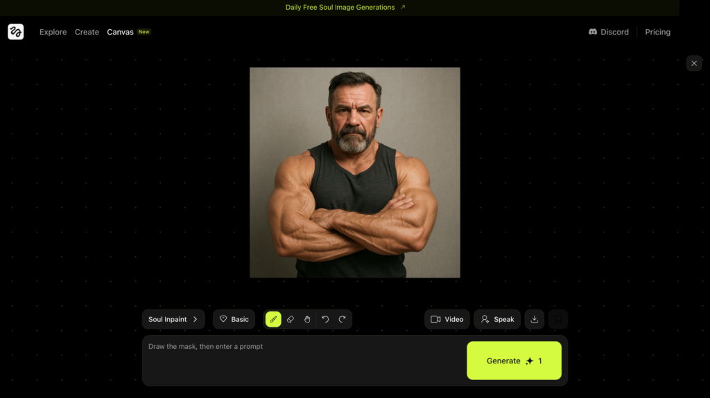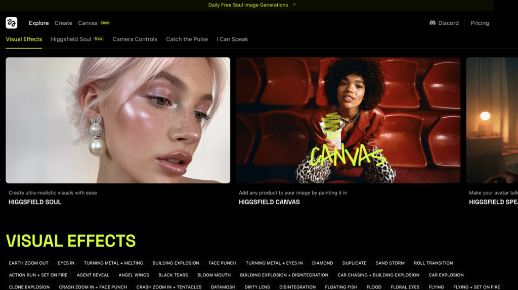 - 独自の画像生成AI「Higgsfield Soul」による画像生成・部分的な差し替えが可能