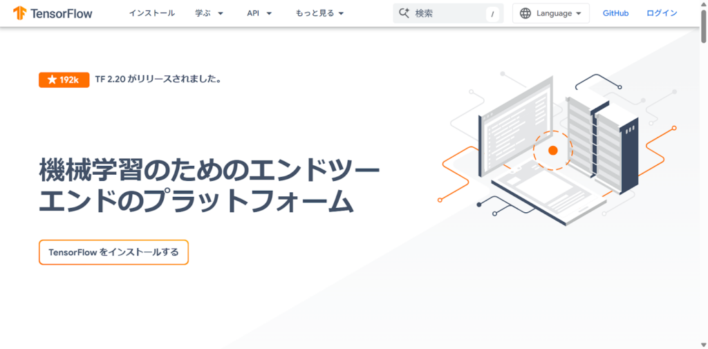 | サイト | https://www.tensorflow.org/?hl=ja |