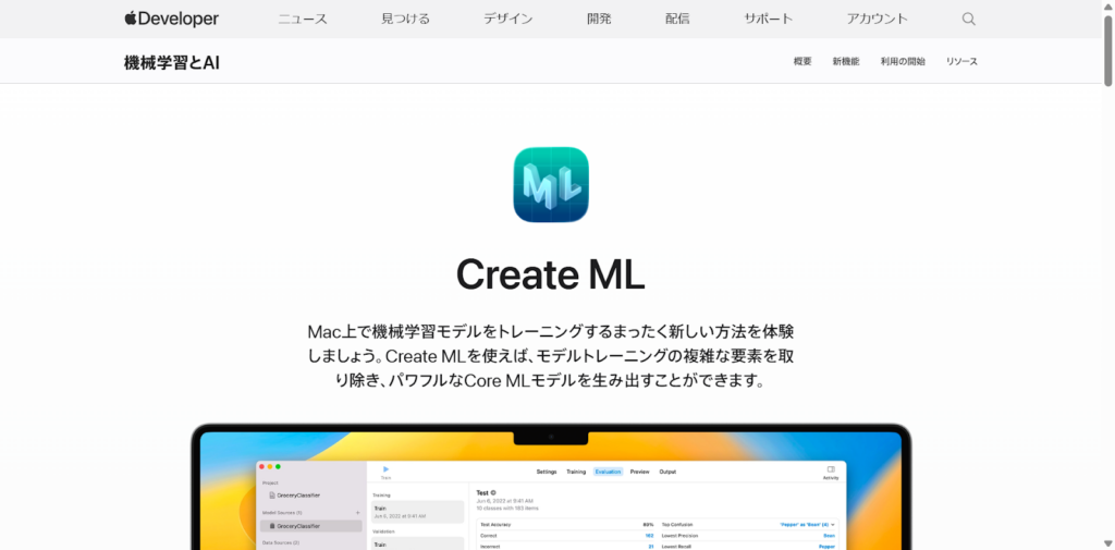 | サイト | https://developer.apple.com/jp/machine-learning/create-ml/ |