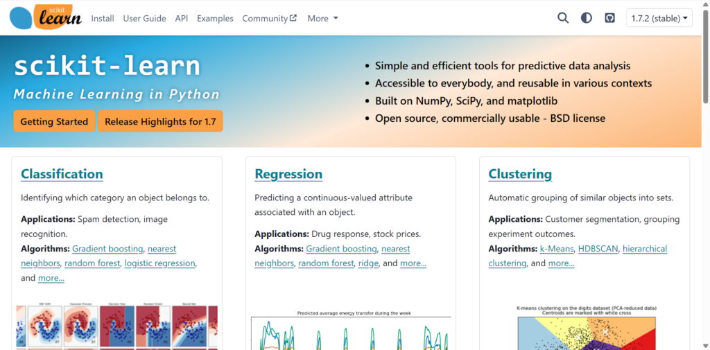 分類や回帰といった処理を得意としているので、スパム検出や画像認識、株価を予測するツールを開発する際におすすめのツールです。