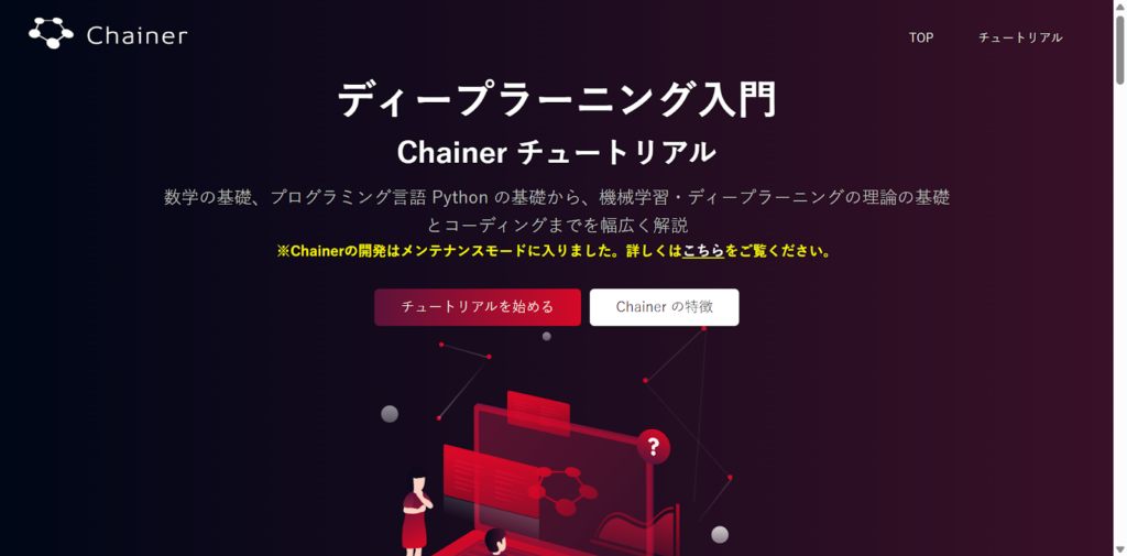 Chainerは、Pythonを使用して深層学習が行えるAI開発ツールです。画像認識、化学・生物学、強化学習などの分野における応用をスムーズに行えるよう、さまざまな拡張ライブラリを提供しています。