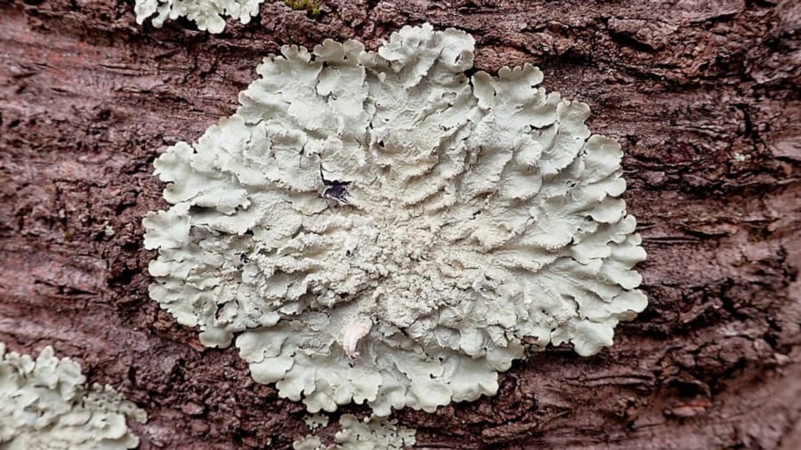 真菌の一種の地衣類。キノコのようにもコケのようにも見える薄く平べったい状態で倒木などの上に広がっています。 / Credit:Lichen Parmotrema tinctorum P4271Credit: