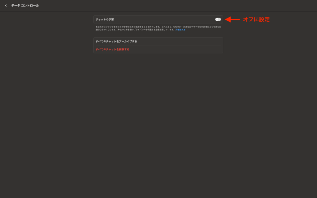 - ChatGPTの設定で「チャットの学習」をオフにする