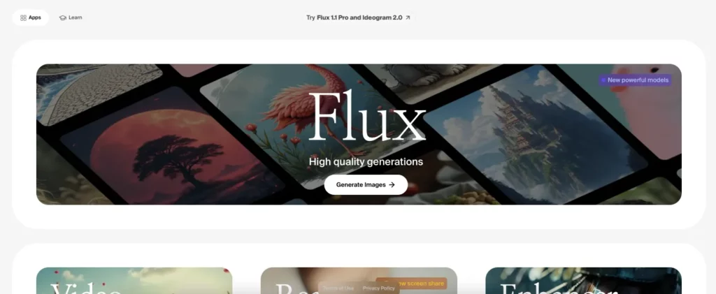 2024年に入り、Krea AIは大きな進化を遂げています。1024×1024ピクセルに対応するようになり、AIが生成するビジュアルコンテンツの精度と詳細が大幅に向上しました。さらに、動画生成の分野でも革新的な機能を提供しており、「Luma Dream Machine」「Runway」「KLING」「Hailuo」「Pika」といった複数の動画生成AIツールを一つのプラットフォームで利用できるようになっています。