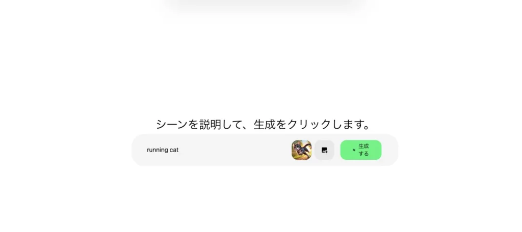 動画の生成は2段階で進みます。最初に低解像度のプレビューが作られ、確認後に高品質な本編が生成されます。途中でも白いボタンを押せば処理を中止できるので、イメージと違う場合はすぐに作り直せます。