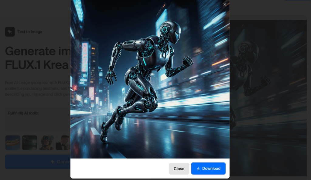 すると、以下のように説明とスタイルに合った画像が出力されます(今回は、「Running AI robot」と入力)。