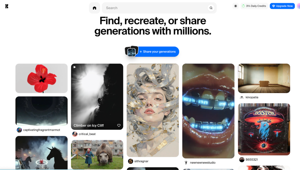 ユーザーは自身が生成した画像や動画をギャラリーに公開できます。他のユーザーの作品を閲覧することで、新たなアイデアやスタイルの発見につながります。