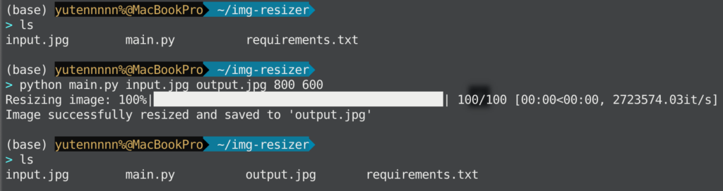 Python 3.11 で、CLI ツール「img-resizer」を作成してください。