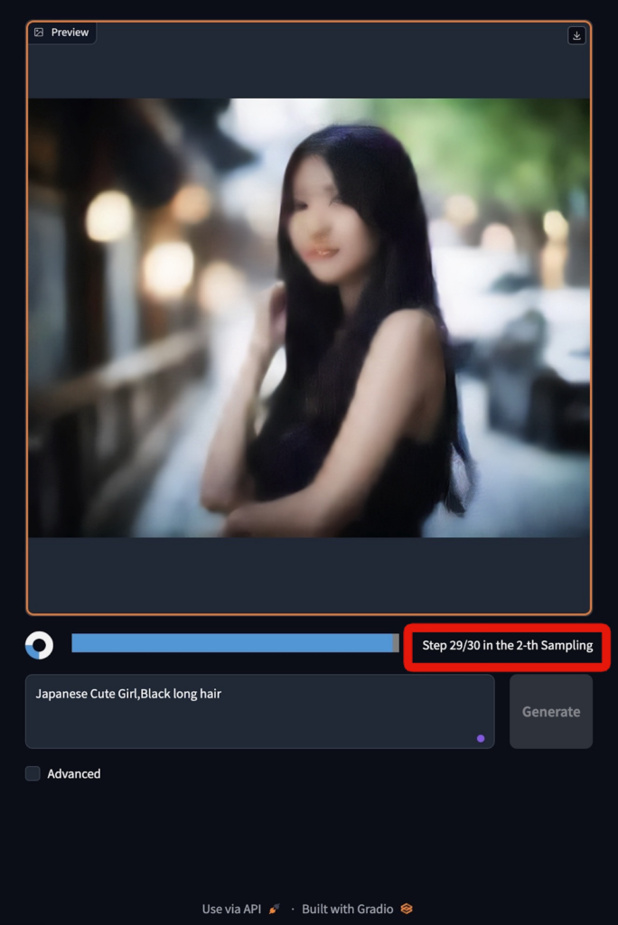 初回はStable Diffusion XLモデルを自動でダウンロードするため、時間がかかります。
