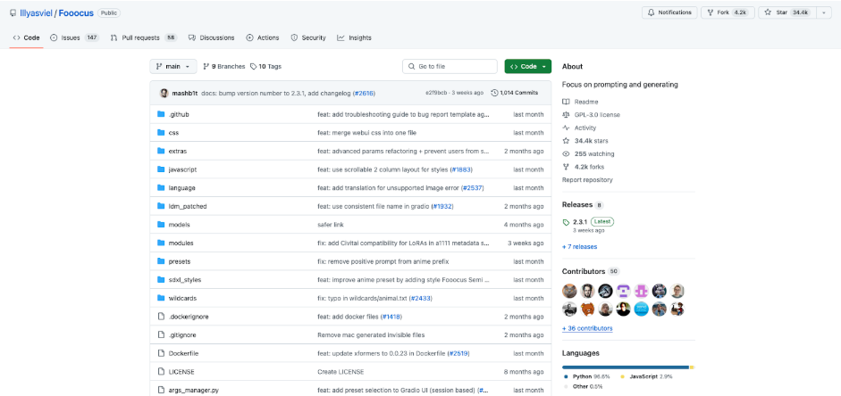 Fooocusが優れているのは、Stable DiffusionとMidjourneyという有名な画像生成ツールのいいとこどりをしているからです。その機能の素晴らしさが好評で、GitHubで人気のツールとなっています。