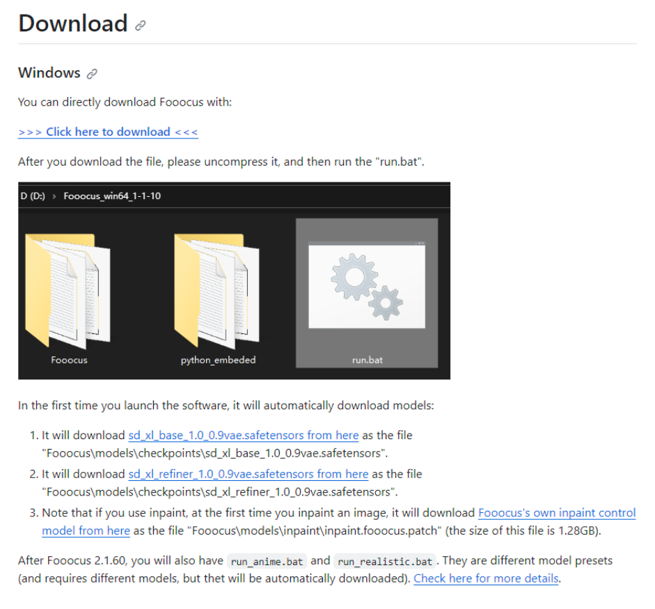 次に、ローカル環境でのFooocusの使い方を紹介します。ローカル環境に導入する方法は非常に簡単で、まずGitHubのページにアクセスします。