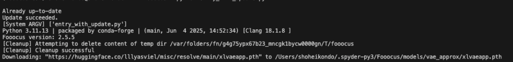 私のMacではメモリが8GBしかなく、メモリ不足になってしまい、実行することはできませんでしたが、上記手順でMacユーザーの方はFooocusを使えます。