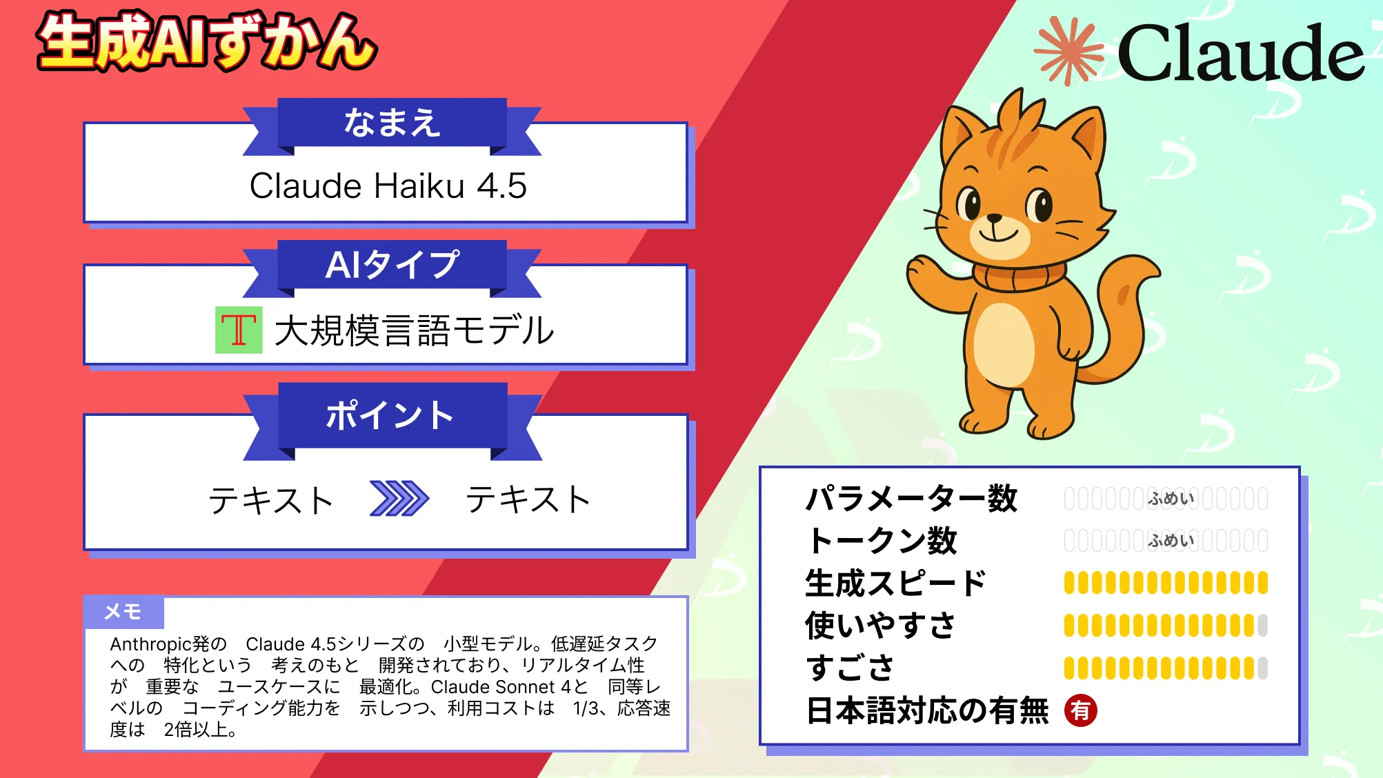 - 対応入力:テキスト、画像