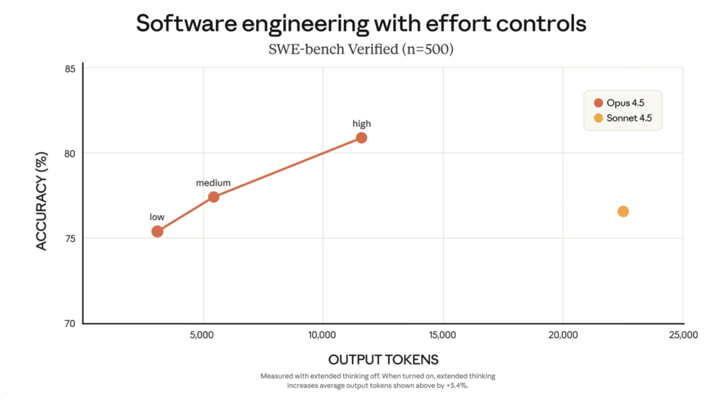 EffortパラメータAPIコール時に「effort=low/medium/high」を選ぶことで、思考量・回答までの時間・消費トークン量をユーザーが調整可能