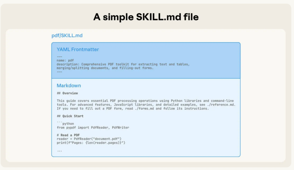 Claudeは起動時にこのメタデータを読み込み、ユーザーの入力内容からどのスキルを適用すべきかを判断。必要に応じて関連ファイル(例:reference.md、forms.mdなど)を自動的に参照 。
