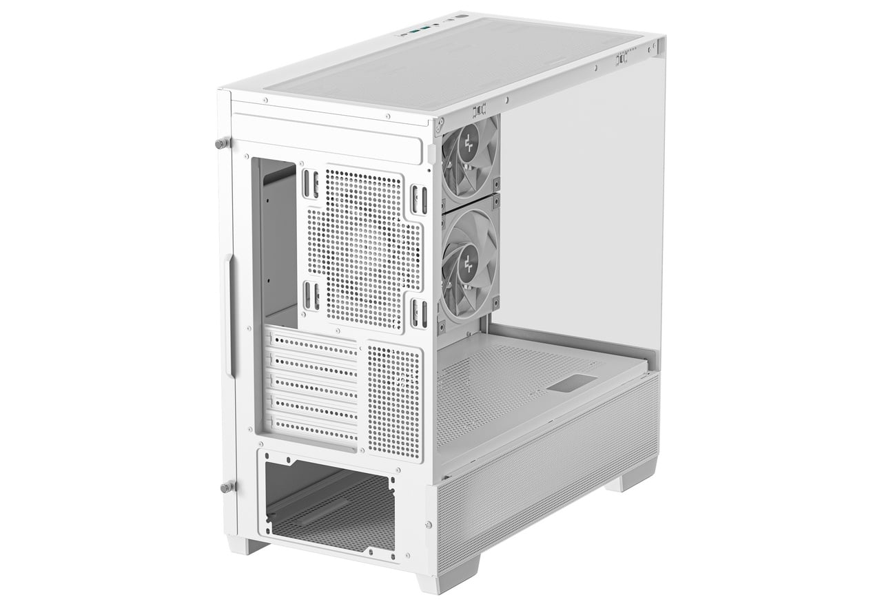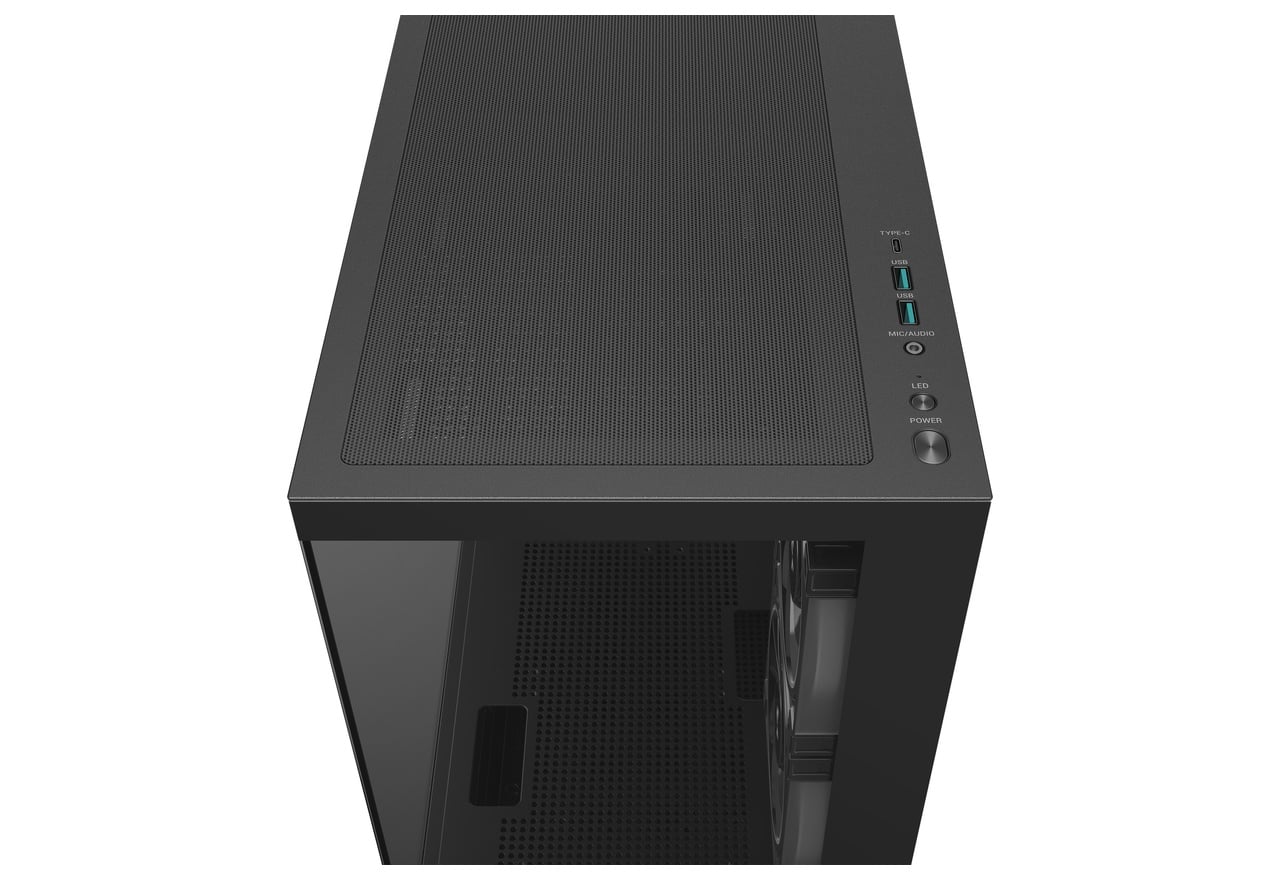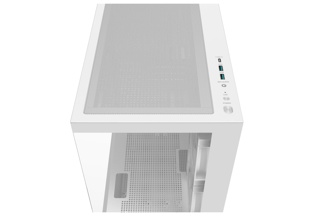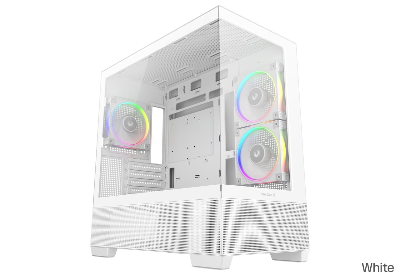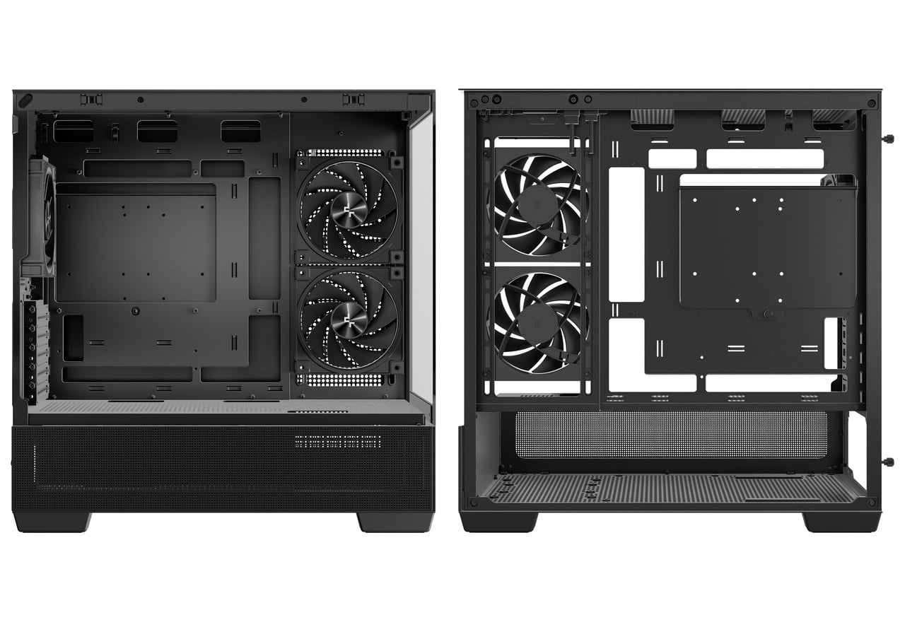 アドレサブルRGBファンを3基標準搭載しており、ピラーレスデザインで広い角度からPC内部やライティングを見せることができます。また、背面コネクタ設計のマザーボードに対応しており、十分な配線スペースとエアフローを確保しています。