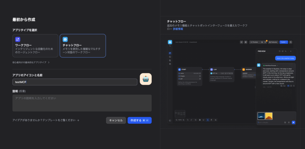 Dify自体は日本語対応していたため、言語の壁を感じることはありませんでしたが、テンプレートは日本語化されていませんでした。そのため、日本人ユーザーからすると少し扱いづらい印象がありました。