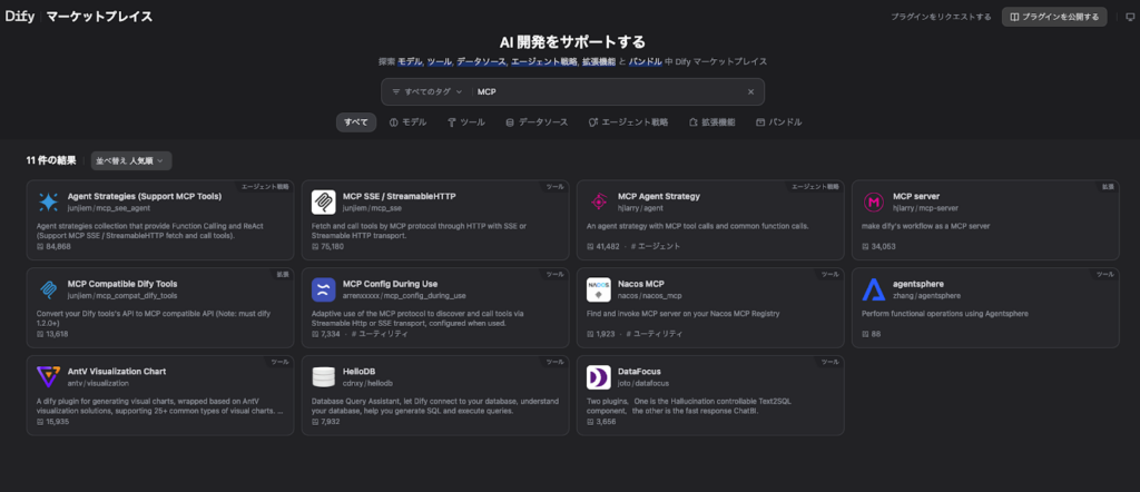 Difyにはテンプレートが数多く公開されており、目的に合ったテンプレートを探すことができる機能です。