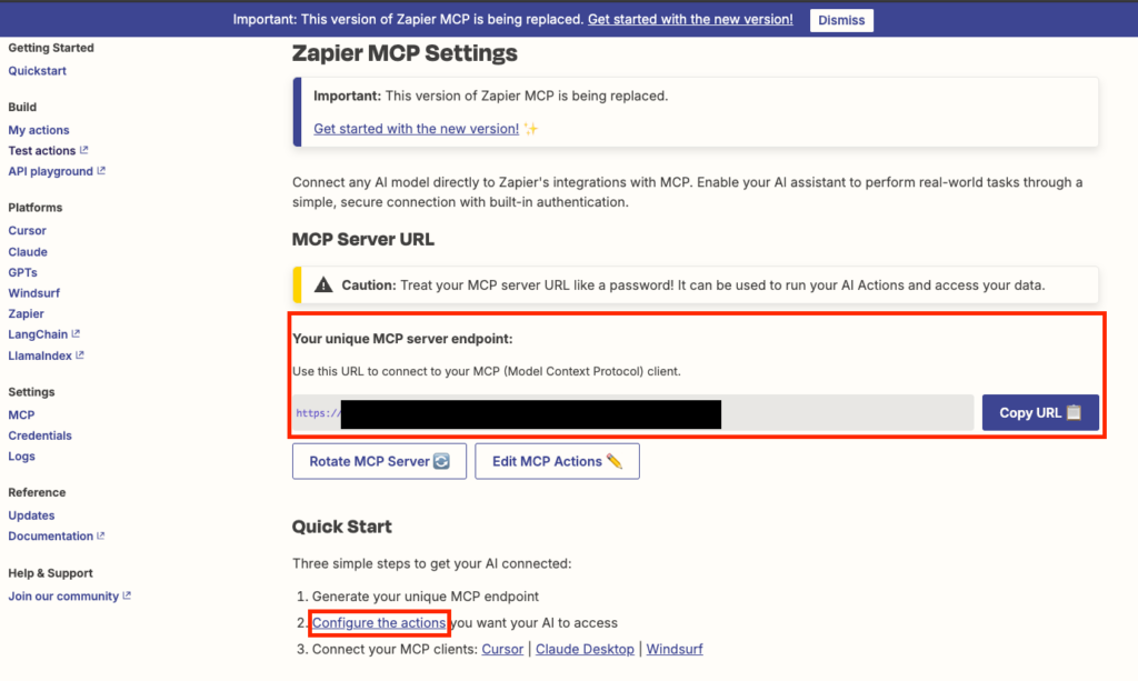 ZapierのページにCopy URLと記載されている内容があるので、それをコピーします。