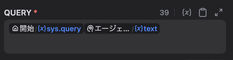出力は質問内容への解答だけでいいです。最後のQUERYにはsys.queryを入力して、エージェント1の設定は完了。