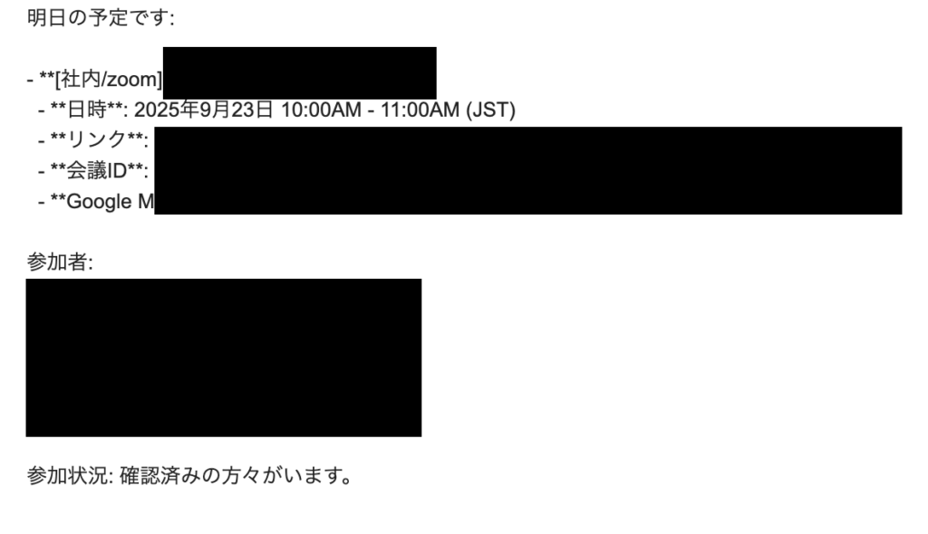 予定について尋ねられた際にはzapier_mcpから得られるGoogle Calendar情報を用いて予定を取得してください。