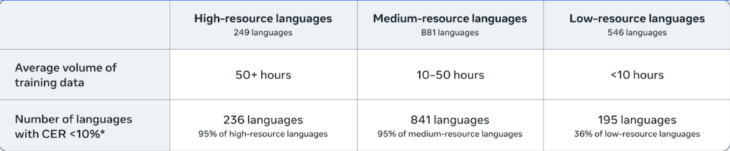 このカバー範囲は、GoogleのUSMやMeta自身のMMSをも超える規模であり、現存するASRモデルの中で最大です。