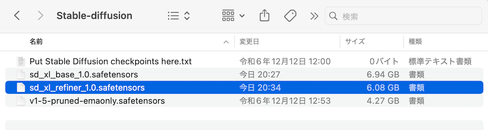 ダウンロードしたBaseモデル・Refinerモデル・VAEの3つをそれぞれ適切な場所に格納します。