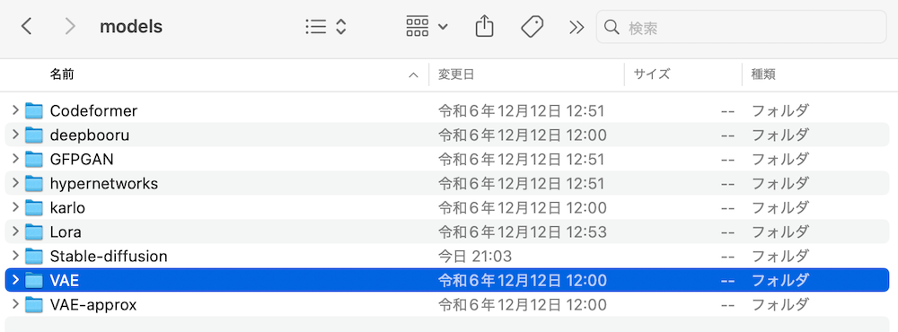 VAEも同じ要領で「models」→「VAE」に格納します。
