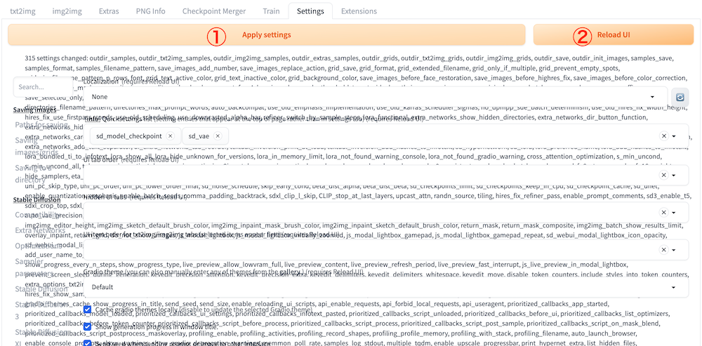 次は「Apply Settings」をクリックして設定内容を保存したあと、「Reload UI」をクリックしてWeb UIをリロードします。
