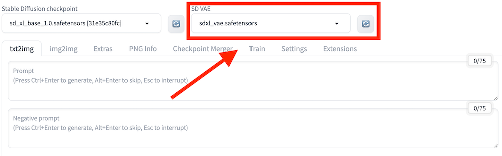 リロード後の画面上部に「SD VAE」が追加されていれば、Stable Diffusion XLを導入する一連の作業は完了です。
