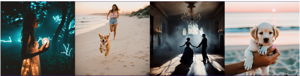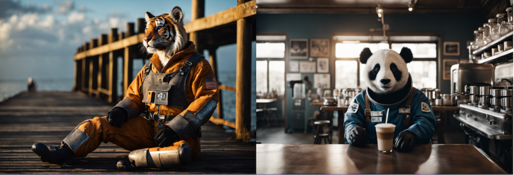 Stable Diffusion XLは、旧モデルと比較して、複雑な構図での画像生成が可能になりました。手やテキストを綺麗に表現できるほか、上記画像の犬を追いかける女性といった空間的に配置された構図を表現できるのが特徴です。