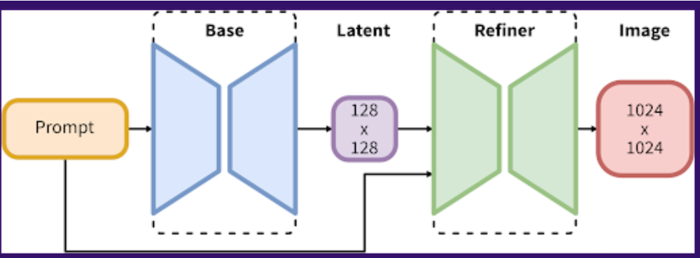 なお、Stable Diffusion XLは、3.5BのBaseモデルと6.6BのRefinerモデルの2種類で構成されているのが特徴です。Baseモデルが潜在情報を生成したあと、Refinerモデルがノイズ除去を実行して効率よく画像を生成できます。